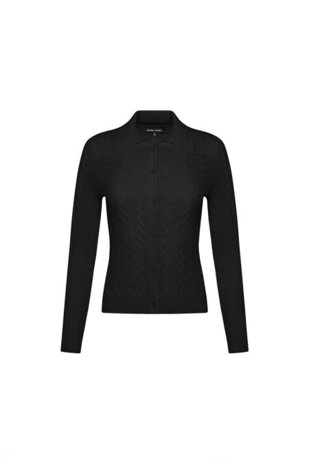 2900,00 ₴Елегантний в’язаний кардиган приталеного силуету з виразним коміром-поло та центральною планкою на ґудзиках. Виконаний із щільного бавовняного полотна в «косичку», з довгими рукавами та манжетами в рубчик. Ідеальний базовий елемент гардероба в будь-який сезон.