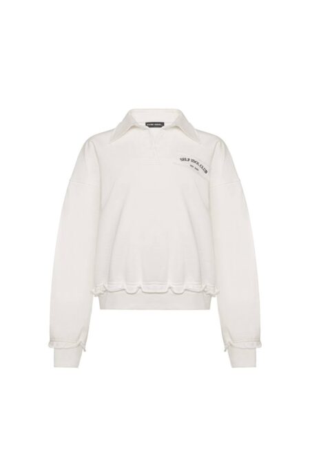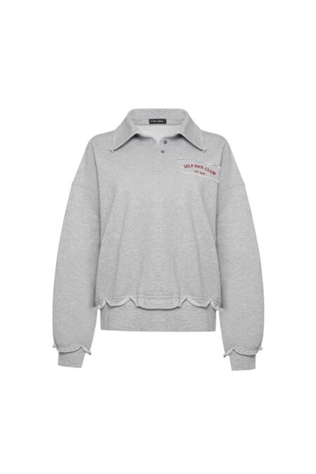 3500,00 ₴Стильне та комфортне поло з довгим рукавом виконане з м’якої бавовняної тканини, що приємна до тіла та підходить для щоденного носіння. Модель має вільний силует, класичний відкладний комір та коротку застібку-поло спереду. Декороване контрастним принтом «SELF IDOL CLUB» на грудях, що додає акценту образу. Нижній край та манжети оформлені делікатною хвилястою обробкою, яка створює легкий неформальний настрій.