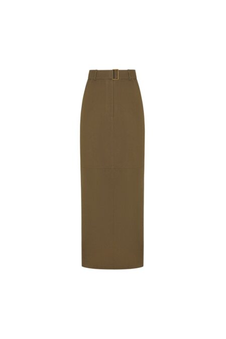 4200,00 ₴Пряма подовжена спідниця довжини максі в елегантному оливковому відтінку. Модель акцентує талію завдяки щільному поясу з широкими шльовками та вшитим текстильним ременем з прямокутною пряжкою в тон. Спідниця має витриманий крій без зайвого декору, має розріз позаду, що підкреслює лаконічність і функціональність образу. Ідеально пасує як для офісу, так і для повсякденного стилю з мінімалістичним настроєм.