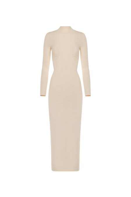 4900,00 ₴Лаконічна в’язана сукня довжини міді з високою горловиною. Модель без рукавів із приталеним силуетом і елегантним обляганням по фігурі. Виготовлена з м’якої еластичної віскозної пряжі.