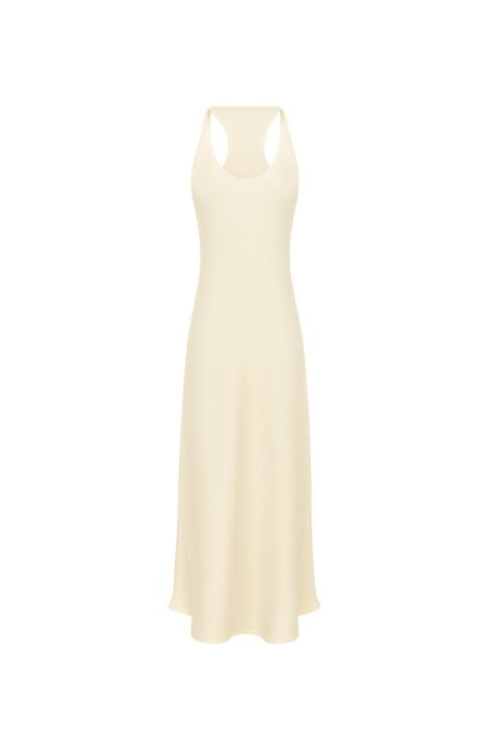4500,00 ₴Легка та струмка сукня-комбінація максі довжини, виготовлена з шовковистої віскози. Облягає фігуру, але не сковує рухів. Модель має глибокий виріз спереду та відкриту спину з широкими бретелями. Нижній край – м’яко розкльошений, що створює плавний силует при русі.