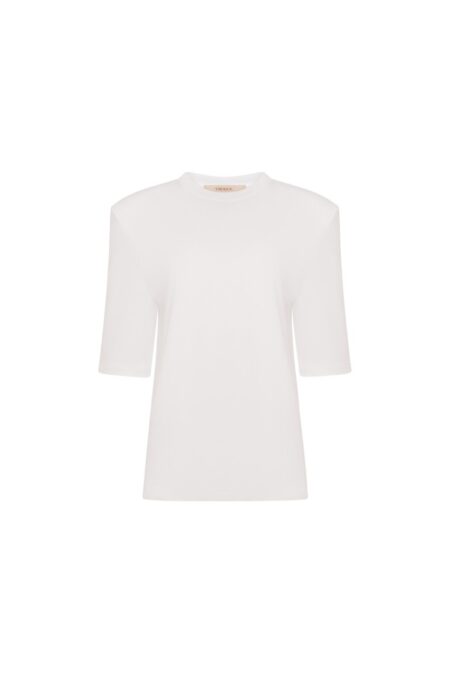 3200,00 ₴Біла базова футболка з виразним акцентом на плечах завдяки вшитим підплічникам. Модель має прямий силует та напівоблягаючу посадку, що підкреслює лінію плечей і створює візуально врівноважений образ. Кругла горловина та видовжений короткий рукав надають виробу лаконічності та актуальності.