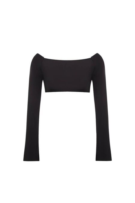 2500,00 ₴Укорочений топ із еластичного біфлексу, що забезпечує ідеальну посадку та комфорт у носінні. Модель має відкриту пряму горловину, довгі облягаючі рукави та приталений силует. Лаконічний дизайн робить топ універсальним елементом гардеробу для вечірніх та повсякденних образів.