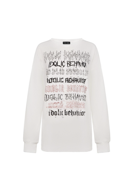 2200,00 ₴Оригінальна ціна: 2200,00 ₴.1650,00 ₴Поточна ціна: 1650,00 ₴.Бавовняний лонгслів вільного крою з округлою горловиною та довгими рукавами. На передній частині розміщено багаторядковий принт із написом “Idolic Behavior” у різних стилях шрифтів. Задня частина – без декору.