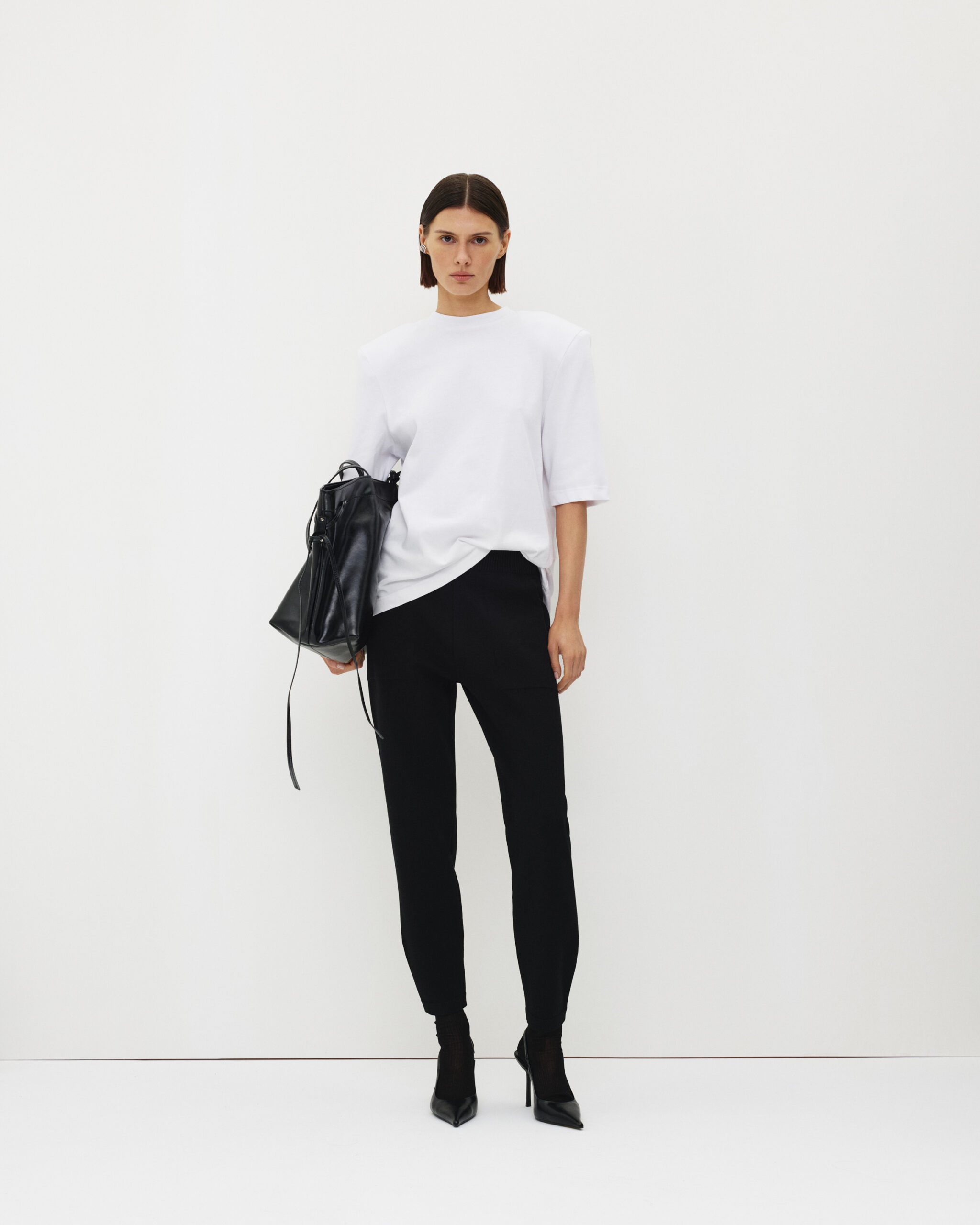 Трикотажні брюки-джогери виконані з в’язаного полотна на основі віскози з додаванням поліаміду, що поєднує м’якість із практичністю та формостійкістю. Модель має комфортну посадку, м’яку лінію пояса та звужений донизу силует із манжетами. Завдяки еластичній структурі матеріалу брюки добре тримають форму, менше зминаються та створюють акуратний, зібраний силует, залишаючись зручними у щоденному носінні.